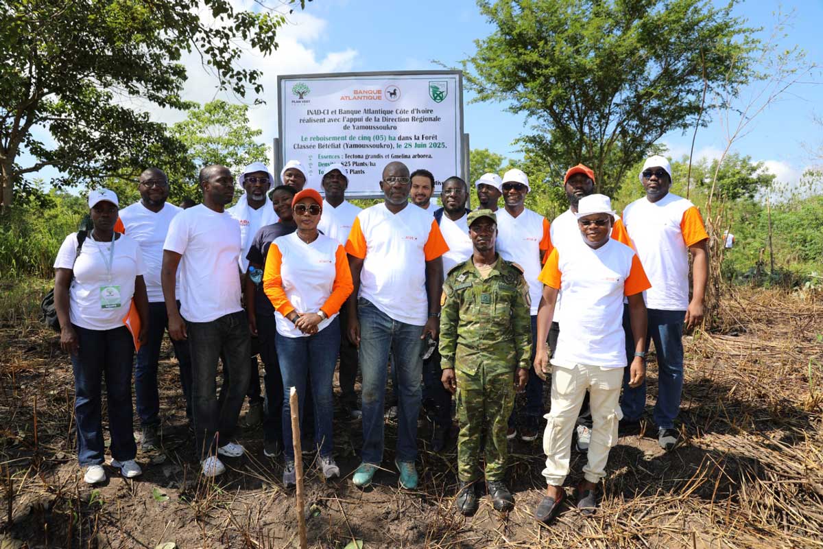 Dans le cadre de son engagement RSE et de sa participation au programme « Plan Vert » de l’Institut National des Administrateurs de Côte d’Ivoire (INAD-CI), Banque Atlantique, filiale du Groupe panafricain Banque Centrale Populaire (BCP), poursuit son action en faveur de la préservation des forêts de Côte d’Ivoire. Le samedi 28 juin 2025, la banque a organisé une nouvelle campagne de reboisement couvrant cinq hectares dans la forêt classée de Bétéfia, près de Yamoussoukro. Avec cette seconde opération, la surface totale reboisée depuis le début du partenariat en 2024, atteint désormais dix hectares, sur un objectif global de 25 hectares à l’horizon 2029.